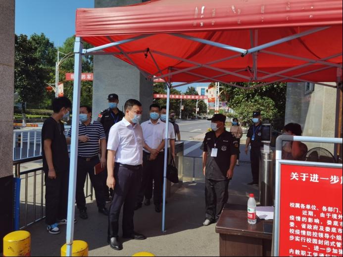 为切实做好国庆节期间校园安全稳定和疫情防控工作,有效防范和遏制各类事故发生,使广大师生度过一个平安祥和的节日,9月30上午,党委委员、副校长曹鑫带队检查了校园安全,党政办、保卫处、学工处、督查处等部门负责人陪同。
