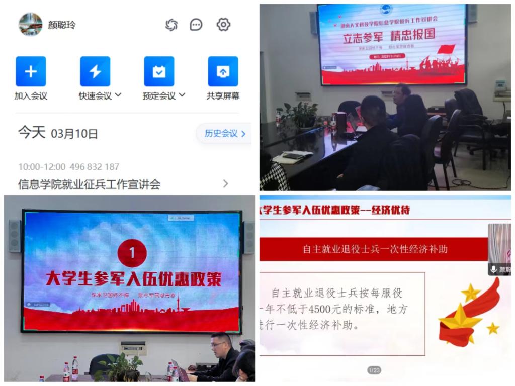 为深入贯彻学校征兵工作安排部署,3月10日上午,信息学院在百全楼211举行征兵工作宣讲会,会议采取线上线下相结合的方式,党总支部副书记刘宗良,征兵专干颜聪玲,2014级退役校友何江,以及2019级学生代表400余人参加了本次会议,会议由颜聪玲同志。