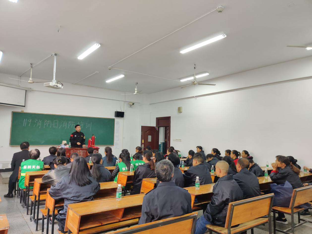 11月3日上午,学工处、武保处联合保利天创物业公司为全体学生宿舍门卫及保洁员举办了一场消防知识安全培训。