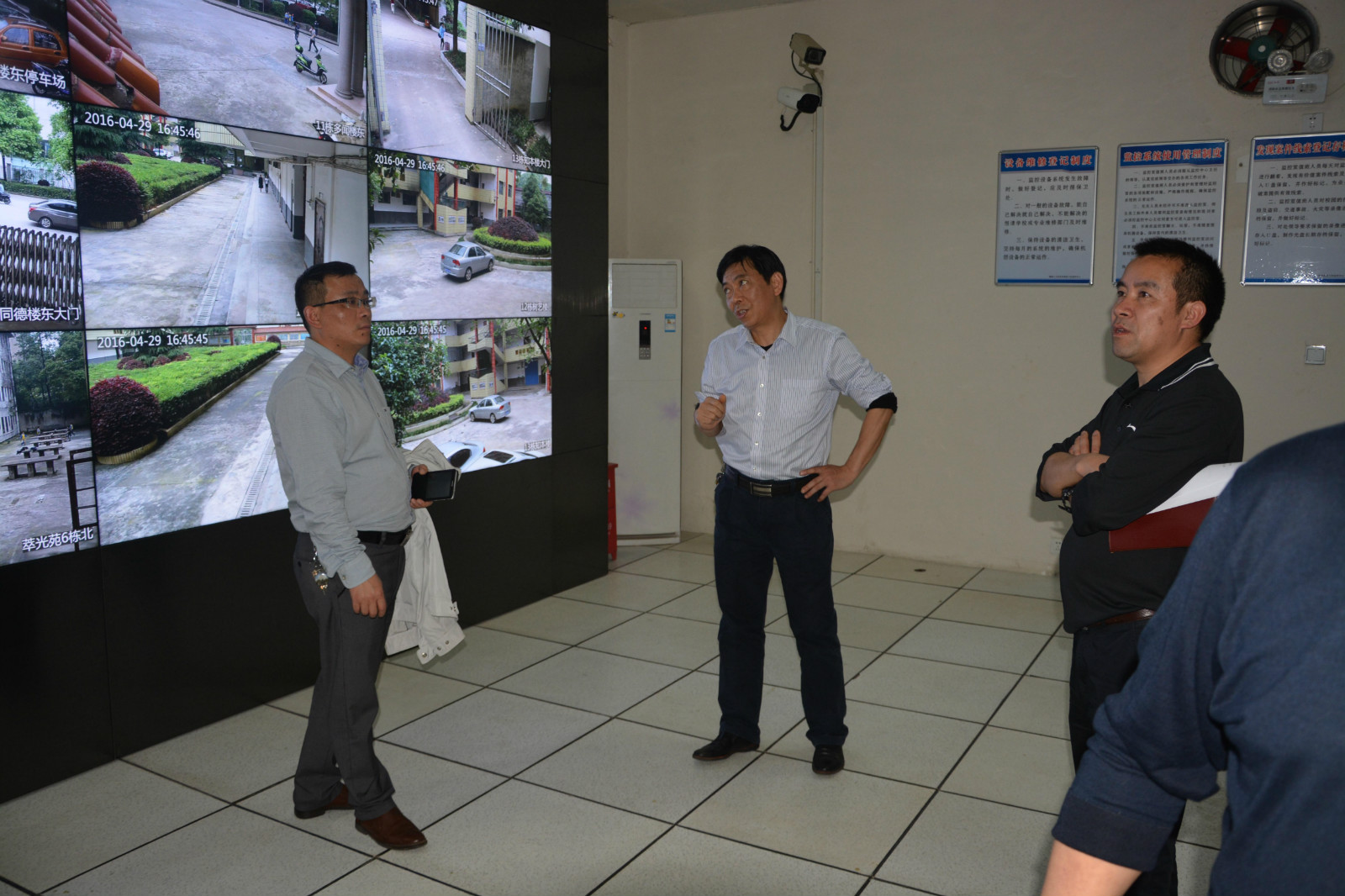 郭书记一行首先来到监控室,了解了监控系统的各项功能,查看了视频监控覆盖的范围和摄像头的图像质量是否清晰,随后对学生宿舍、学生食堂进行了走访和检查。在检查过程中,郭书记与宿舍、食堂的工作人员进行了亲切交谈并向他们致以节日的问候,仔细询问了假期的值班人员安排是否到位,详细了解了容易发生的安全隐患及预防措施等情况。郭书记指出,我们要把安全工作放在首位,落实好食品安全、消防安全、人员安全等相关的安全工作制度,确保全校师生度过一个欢乐祥和的节日。(梁鸿志供稿)