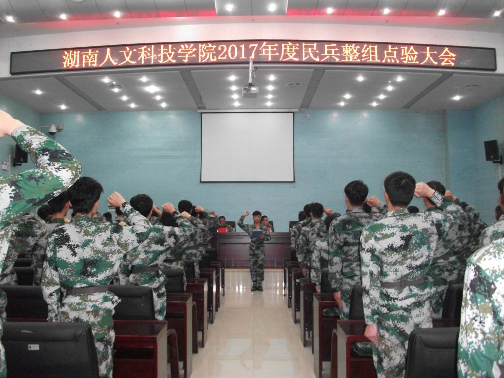 4月19日上午,beat365在图书馆二会议室举行2017年度民兵整组点验大会。娄星区人武部军事科科长郑剑少校、娄星区政府督察室周丽军、校武装部部长郑秀星等出席大会,学校全体民兵参加。大会由校武装部副部长雷振东主持。