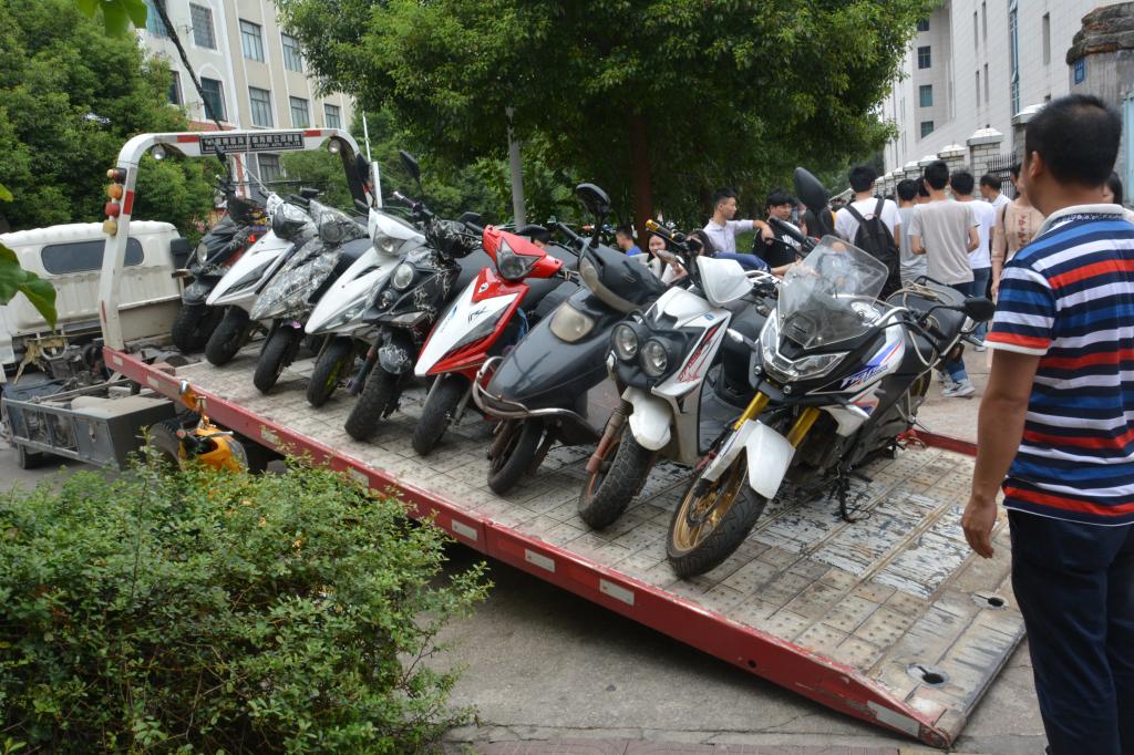 开学伊始,为了给广大师生营造一个更加良好的生活、学习和工作的环境,给即将到来的迎新工作营造一个更加温馨宜人的校园环境,结合beat365参评全国文明校园的工作,9月4号下午和9月5号上午在交警的支持和参与下保卫处治安科的全体人员做到了提前上岗,文明值勤;收缴了在马路上和人行道乱停乱放摩托车共60余台,使学校的周边环境得到了进一步的优化。(苏继富 供稿)