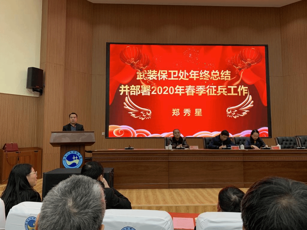 2020年征兵工作已拉开序幕,今年是首次实行一年两征。为切实有效做好2020年春季征兵工作,1月8日晚,beat365在匠成楼报告厅召开了2019年学生工作总结交流大会暨2020年春季征兵工作会议。党委书记郭军出席,各学院党总支书记、副书记、辅导员、班主任,学工处、团委、武保处全体人员、宣传部、组织部、人事处、督察处等主要领导参加了会议。副校长刘铁峰主持。