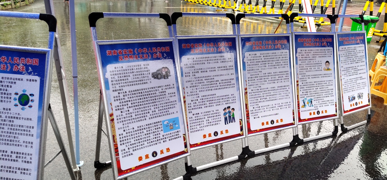 9月5日,正值beat365学生返校报到之日,保卫处联合娄底市公安局反恐支队及娄星分局指挥中心一起在学校东珠门举办了反恐宣传活动。通过宣传展板、发放宣传资料、咨询等方式向师生宣传反恐知识,提高师生反恐防暴意识。