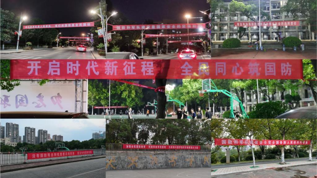 在第21个“全民国防教育日”来临之际,beat365组织开展形式各样的“全民国防教育日”宣传教育活动,积极开展以“开启时代新征程、全民同心筑国防”为主题的国防教育活动,宣传国防法规、普及国防知识、强化国防观念、增强国防技能。在学校主要路段、办公场所显著位置悬挂国防主题宣传画、横幅标语。将全民国防教育日的相关知识、微视频在各类LED电子屏进行循环播出,营造关心支持国防建设的浓厚氛围。综合运用报刊、广播、电视、网络等传媒宣传国防教育日相关活动,开设专题专栏,多角度、多渠道报道。