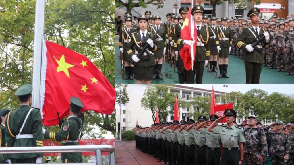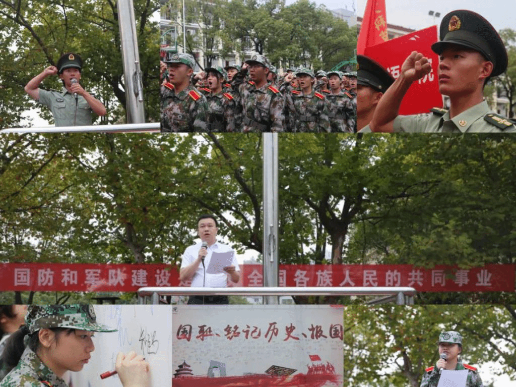 9月18日,在海园广场(新生军训主场)进行专题展板宣传,营造良好的国防教育宣传氛围。通过观看展板,师生了解了国家振奋人心的成就,从积贫积弱一步步走到繁荣昌盛的艰苦历程。