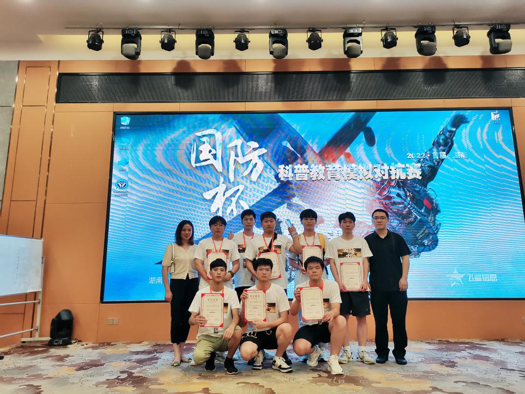 2022年9月17日是全国第22个全民国防教育日。为深入开展全民国防教育,营造全社会关心国防、热爱国防、建设国防、保卫国防的良好氛围,湖南省全民国防教育委员会办公室、湖南省高等教育学会国防教育专业委员会联合举办湖南省首届“国防杯”科普教育模拟对抗赛。总决赛于9月17日下午在湖南军联国防教育基地举行。beat365信息学院战队成员邹彬彬、单子佟、陈俊杰、李辉、张亿、陶枫、易勋辉、毛浩八位同学代表学校参赛,通过激烈的角逐,最终荣获首届“国防杯”科普教育模拟对抗赛总决赛优胜奖。