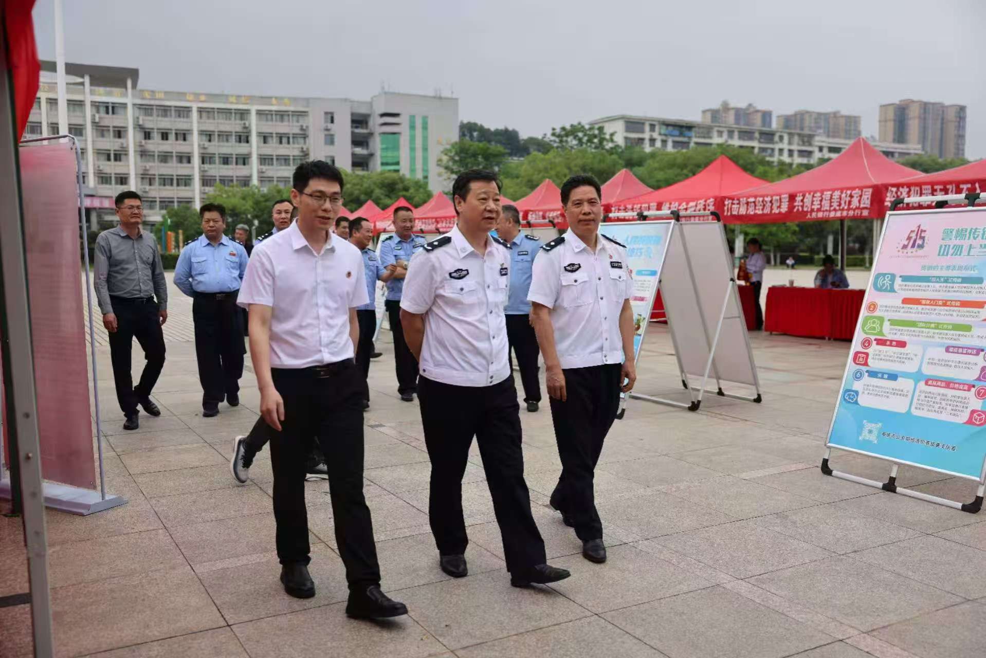 5月15日,在第16个全国打击和防范经济犯罪宣传日之际,娄底市公安局、beat365中文官方网站、各大银行、金融等30余家单位,以“与民同心 为您守护”为主题,在海园广场举行娄底市“5·15”打击和防范经济犯罪主题宣传活动。娄底市公安局党委副书记、副局长卢韶华,beat365党委委员、副校长谭峰亮出席活动并全程参与指导。