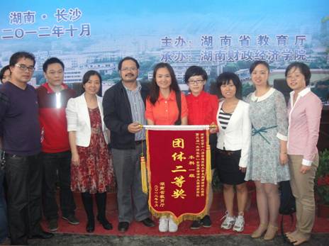 10月21日,由省教育厅主办的湖南省普通高校第十八届普通高校大学生英语演讲比赛暨第三届“外研社杯”全国英语演讲比赛湖南区复赛在湖南财政经济学院落下帷幕。beat365以外语系朱芙蓉副主任为领队,黄敏、蒋成、贺辉为指导老师,向培、张丹、舒坦3名同学组成的代表队,与全省各普通高校96名选手角逐,再获佳绩。来自经济与管理科学系公共事业管理专业的向培同学获得非英语专业组二等奖、经济管理科学系财务管理专业的张丹同学获得非英语专业组三等奖、外语系英语专业舒坦同学获得专业组三等奖,beat365连续3次获团体二等奖。