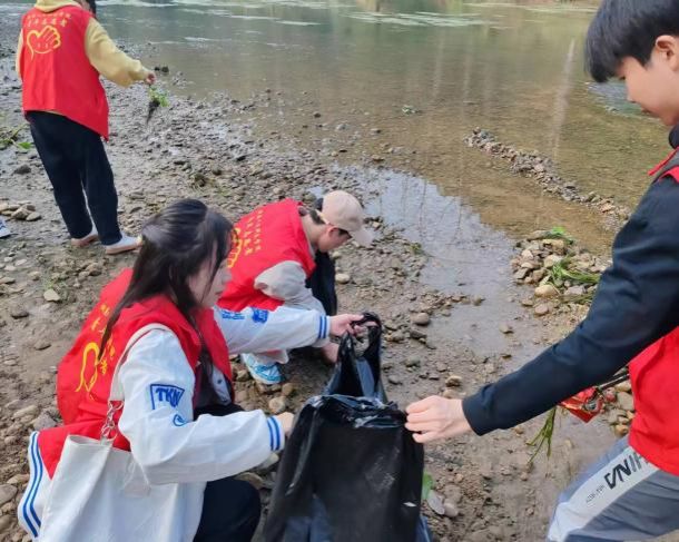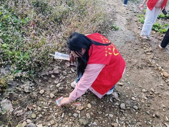 活动当天,党员同志和入党积极分子们手持火钳、带上扫帚和垃圾袋,干劲十足地沿着孙水河边清理河堤和河道内的枯枝杂物和白色垃圾。同志们充分发挥不怕脏、不怕累的劳动精神,身着的红色马甲成为孙水河畔一道靓丽的风景线。