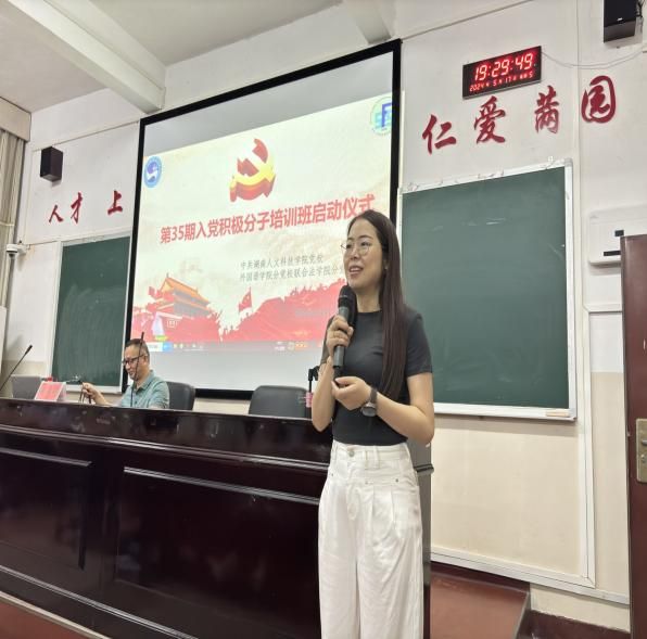 为深入学习贯彻党的二十大精神,全面提高入党积极分子的党性修养,5月17日,beat365中文官方网站外国语学院分党校联合法学院分党校圆满举办了第35期入党积极分子培训班。本次培训采取线下集中授课和线上自主学习相结合的形式开展,我院共六十余名入党积极分子参加。