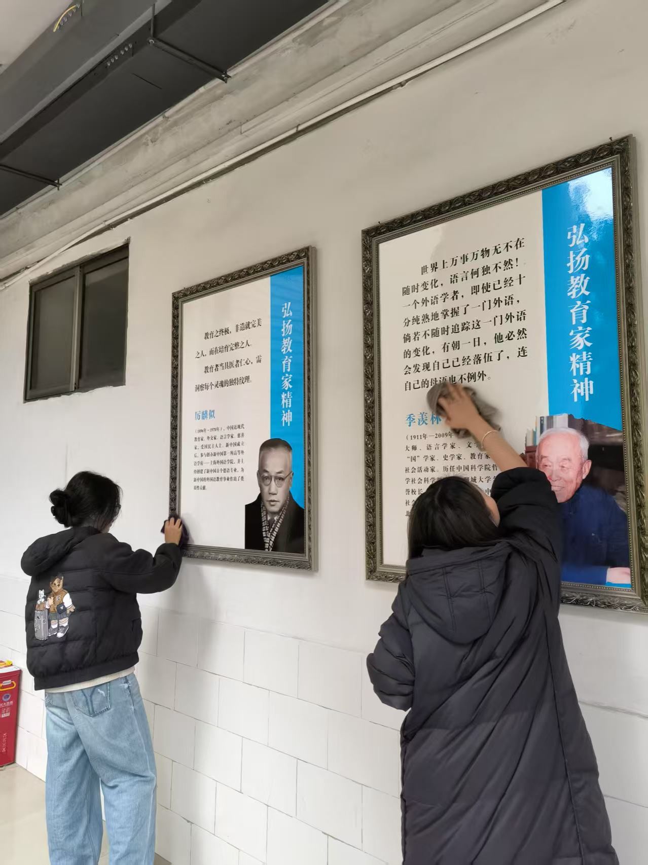 在清洁活动中,学生党员们热情高涨、铆足干劲、分工明确、配合默契、行动迅速。他们认真擦拭橱窗玻璃和边框,仔细清理橱窗内的灰尘和杂物,不放过任何一个卫生死角。经过一个多小时的辛勤劳动,使播馨楼的宣传橱窗和文化长廊焕然一新。