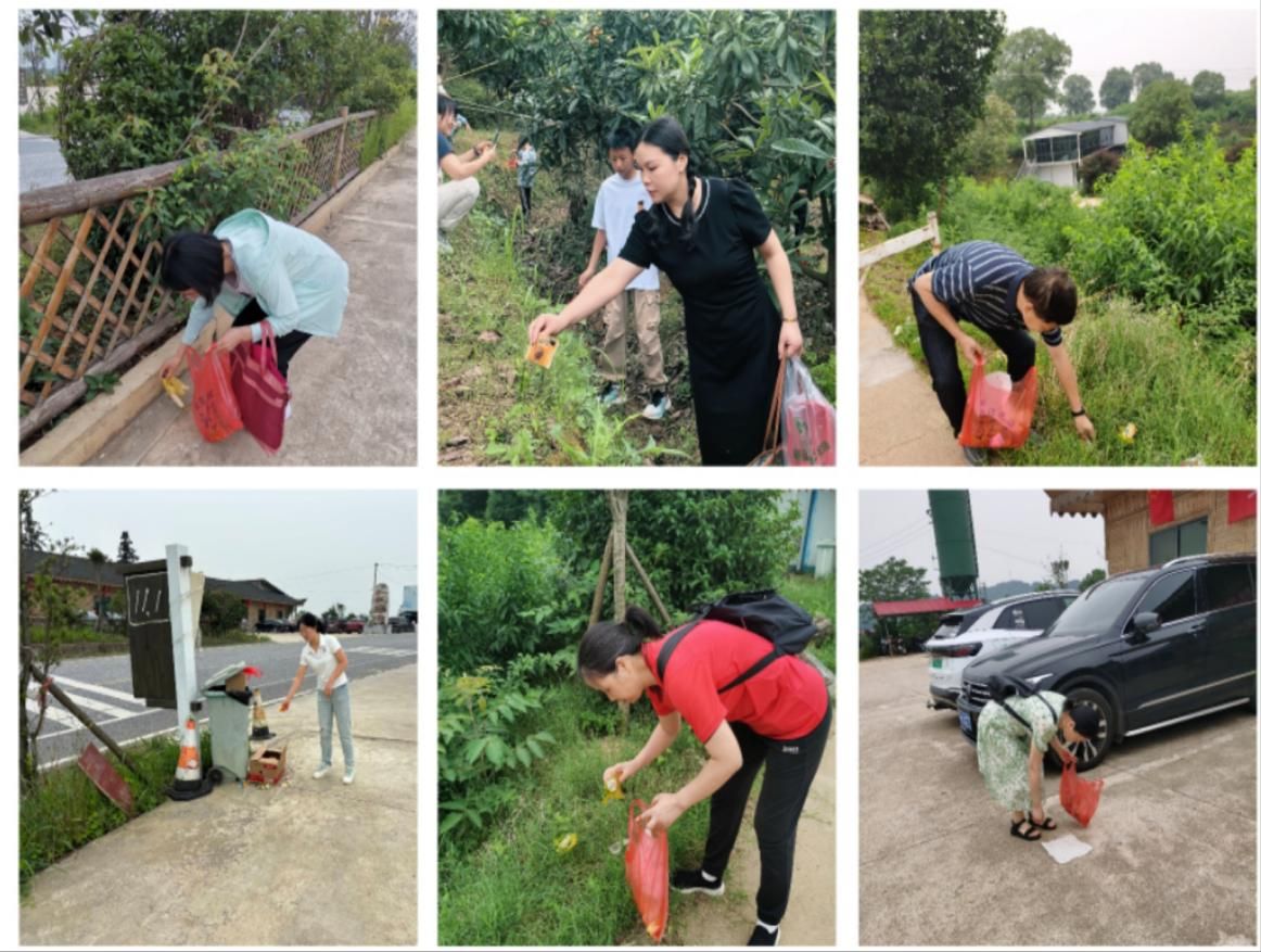 全体党员实地参观生态农场现代化农业种植基地,听取了农场负责人详细介绍了特色农产品培育、生态农业旅游开发等情况,真切感受科技赋能、文旅融合带动乡村振兴的丰硕成果,深刻体会习近平总书记“绿水青山就是金山银山”的理念。接着,党员手持工具,分组深入沟渠、河道、马路沿线等地清理垃圾。清理过程中,大家不怕脏累,细致排查每一处卫生死角,将散落的塑料袋、饮料瓶等可能影响土质和水体质量的污染物逐一清捡、分类收集。最后,党支部组织党员进行了座谈,主要结合今日所见所闻、专业建设、工作实际等方面如何助力乡村振兴开展讨论。党员们都感叹,水府庙生态环境保护取得的显著成效,正是对“两山”理念的生动实践;也纷纷表示,这次活动既是一次亲近自然的体验,更是一堂生动的党课,提醒大家要始终牢记党员身份,永葆本色,并要发挥专业所长为乡村旅游翻译、文化宣传贡献外院力量。