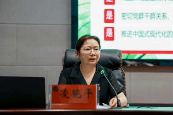 凌艳平指出,全体党员要准确理解开展深入贯彻中央八项规定精神学习教育的重大意义, 深入学习领会习近平总书记关于党的建设的重要思想、关于党的自我革命的重要思想、关于加强党的作风建设的重要论述。她重点梳理了中央八项规定自2012年制定以来经历的重要节点,对中央八项规定及中央八项规定精神作了详细政策,带领全体党员深刻领悟中央八项规定及其实施细则精神的内涵实质,结合违反中央八项规定精神典型案例以案示警,要求全体师生党员率先垂范,筑牢廉洁自律的思想防线,推动作风建设常态化。