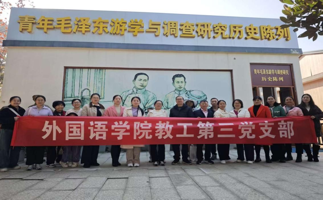 为深化党建引领思政教育的内涵与实效,厚植红色文化基因、凝聚育人奋进力量,11月30日,外国语学院教工第三党支部组织全体党员赴娄底茶园东冲村爱乐行红色教育基地开展“与党同心‘语’你同行”主题党日活动。