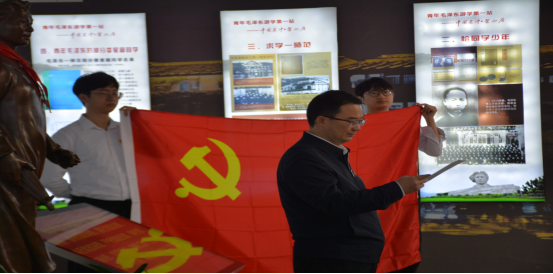 东冲村苍山居作为青年毛泽东游学第一站,留下伟人游学实地调研,向自然、向社会、向劳苦大众求知的事迹,为其日后“实事求是”及“为人民服务”思想奠定基础。我院青年预备党员在院党总支书记阳立新的带领下来到展厅,接受思想洗礼,面对党旗庄严宣誓。开启了一名党员的政治生命,作出了为实现人生最高价值的无悔选择与庄严承诺。随后,阳立新向预备党员们着重说明入党宣誓之于每一党员同志的重要意义,并提出了四点希望:一是要强化政治担当,严守政治规矩;二是要加强理论学习,坚定理想信念;三是要践行党员义务,发挥党员作用;四是增强责任意识,遵守党员纪律。