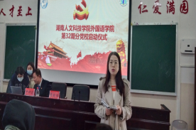 培训伊始,外国语学院党总支专职组织员曹瑜虹主持开展本次培训的开班仪式。曹瑜虹对此次培训的学习纪律和有关要求进行了强调。随后,外国语学院党总支书记阳立新、院长胡瑾、文学院党总支书记尹钟宏、法学院党总支书记肖兵明及外国语学院党总支副书记罗嗣安、党总支专职组织员曹瑜虹就此次培训内容给学员们上了一堂堂生动的党课。
