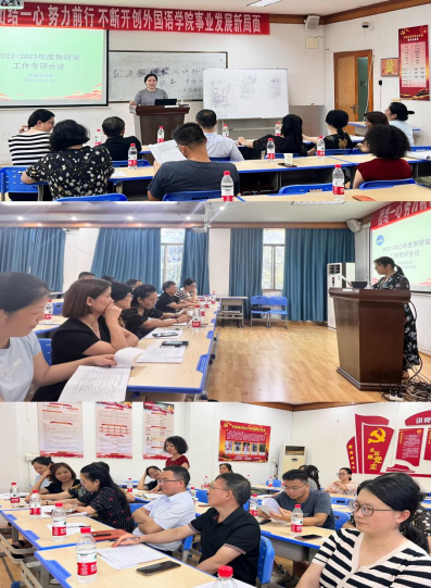 外国语学院于2023年9月19日对2022~2023学年度教研室工作进行评审。以学院领导、学术分委员会代表、教学指导分委员会、教学督导、教务办主任等成员组成考评工作小组。考评工作小组评委认真听取了三位教研室主任对教研室各项工作的详细汇报及各教研室教师代表的补充说明,对各教研室的申报材料进行了审阅,对各教研室的工作予以了高度的评价,最后评选公共外语教研室周萍主任为优秀等级,其他两位教研室主任为合格等级。