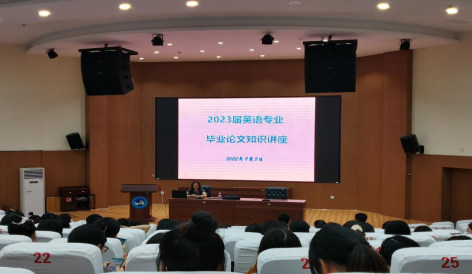 为帮助毕业生提高毕业论文写作能力、提升毕业论文质量,外国语学院积极部署2023届本科毕业生毕业论文撰写工作,2022年9月8日晚在匠成楼报告厅开展英语专业毕业论文知识讲座,讲座由外国语学院卿逸豪副院长主讲。