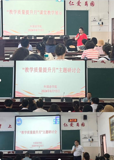 为深入贯彻落实《beat365中文官方网站关于开展“教学质量提升月”活动的通知》文件精神,2024年6月13日下午外国语学院院长张点组织全院专任教师在播馨楼406开展“研思赋能,共促成长”主题研讨会。质量监控与发展规划处伍铁斌处长和教务处李宁副处长参加了此次活动。