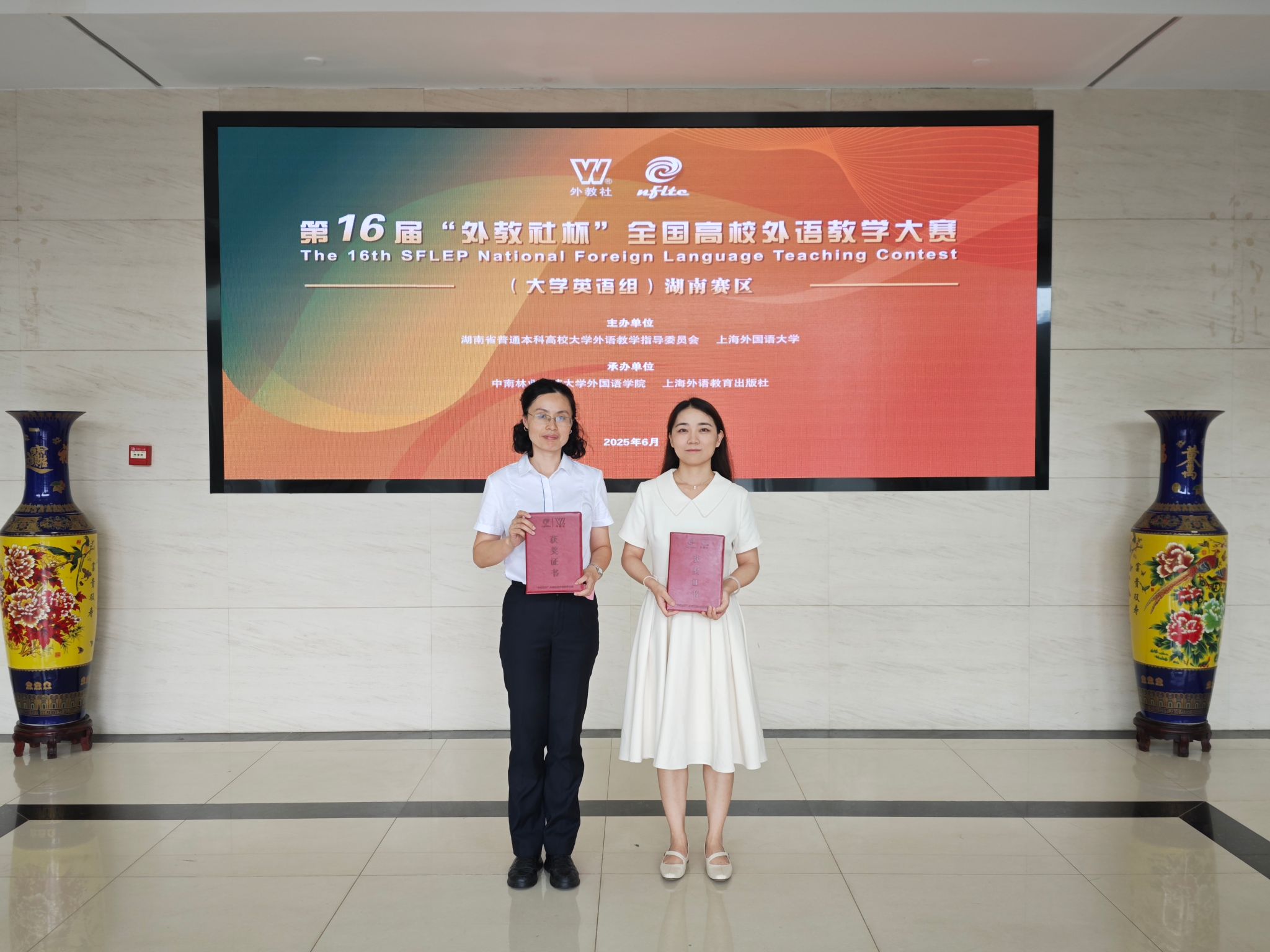 2025年6月21日至22日,第十六届”外教社”杯全国高校外语教学大赛大学英语组(湖南赛区)在风景秀丽的中南林业科技大学圆满落下帷幕。本次竞赛旨在服务教育强国战略, 推进教育数字化战略行动,全面提高人才培养质量。在此次竞赛中,我院肖婷教师团队与张晶露教师团队荣获省级三等奖。