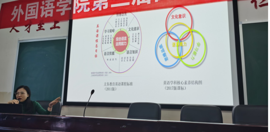 2020年11月8日,湖南省教科院英语教研员、湖南师范大学硕士生导师周宁之博士为我院英语专业2018级学生做了题为“学科核心素养背景下的初中英语单元整体教学设计与实施”的讲座,周博士首先阐述了英语学科核心素养的结构图,然后从语言能力、学习能力、思维品质、文化意识的逻辑关系出发,阐述了初中英语课堂的新要求,从理论到案例,深入浅出指出了四大核心素养的培养路径,高屋建瓴地指出了教学设计过程中普遍存在的问题和高效课堂的基本要素。