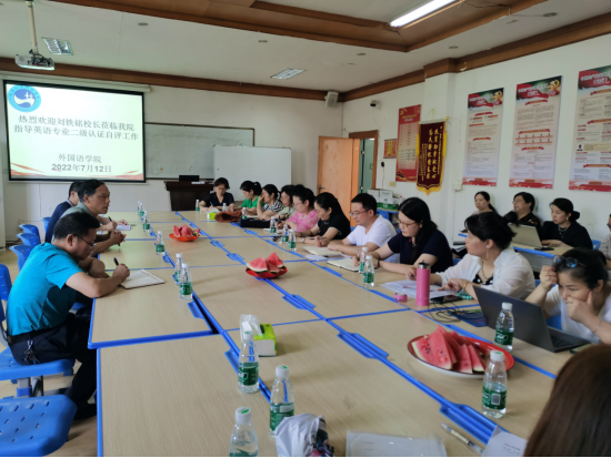 7月12日上午,校长刘铁铭在质量监督规划处蒋冰清处长、李国强副处长、张忠民科长的陪同下来到我院慰问英语专业二级认证工作组成员,代表学校向假期坚守岗位、紧锣密鼓备战英语专业二级认证工作的教师表示感谢。