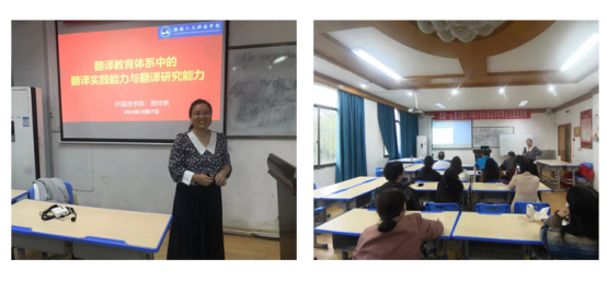 周祥艳老师从翻译教学到翻译教育的转型、翻译教育研究体系构成、翻译实践能力考核、翻译研究兴趣挖掘四个方面,与大家分享了自己的看法。讲座结束后,与会教师就翻译实践能力和研究能力提升、翻译服务地方经济发展等话题进行了深入讨论。