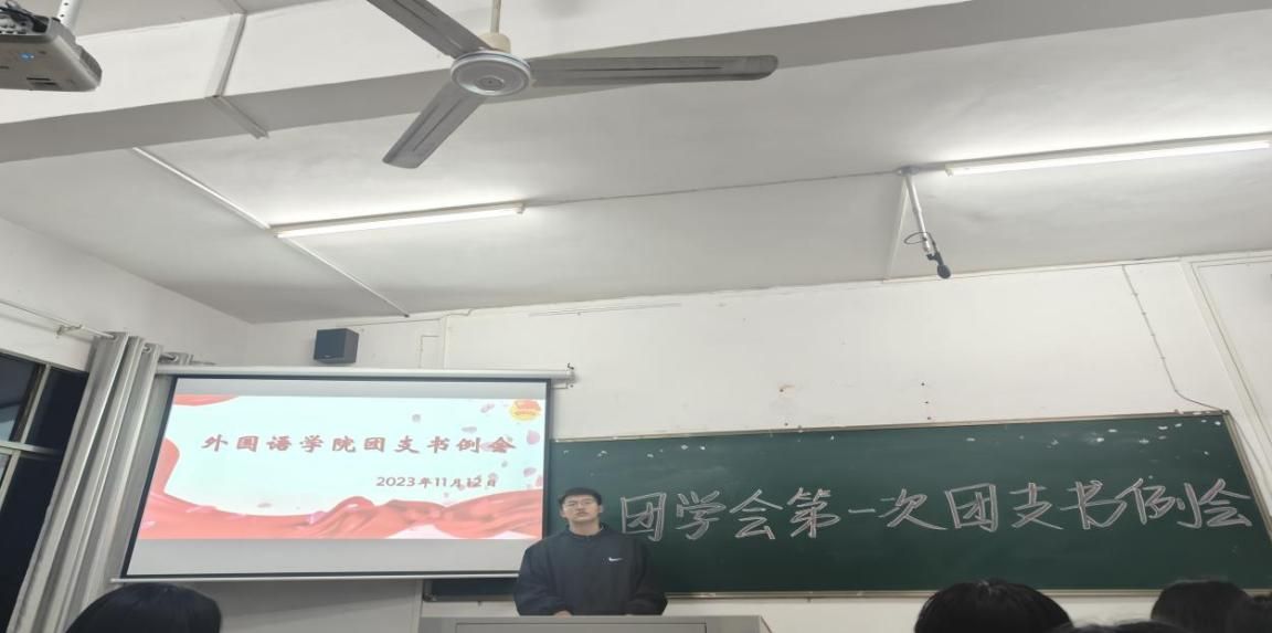 2023年11月12日晚,外国语学院于播馨楼304召开了外国语学院团支部书记第一次例会,外国语学院团总支副书记王晨曦、团学会组织部全体成员、全院团支书参加了此次会议,外国语学院团总支书记李治龙主持会议。