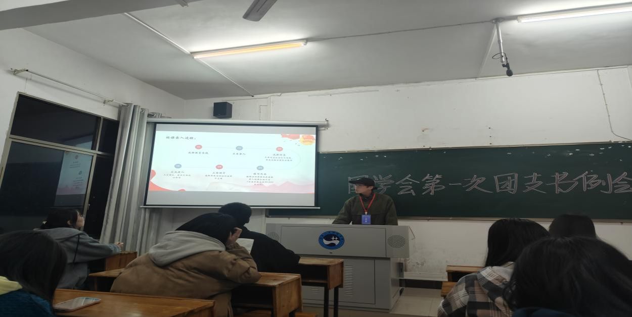最后,外国语学院团学会组织部部长龚佩和李昀睿分别上台发言。他们就团课开展、青年大学习、智慧团建录入、志愿献血等工作进行详细介绍和方法讲解,并鼓励全体团支书积极配合,按时、按质、按量完成院团总支布置的各项工作。