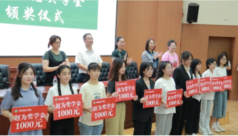 随后,举行赵为励志奖学金颁奖仪式,十位品学兼优的20级和21级学生获得奖学金。20级商务英语二班曹扬作为获奖代表进行发言,表示一定不会辜负学姐的善举美意,要做敢于有梦、勇于追梦、勤于圆梦的时代好青年。