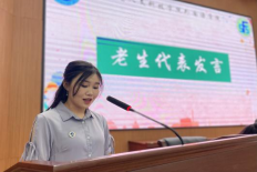 紧接着,2022级英语师范四班闫姝颐作为新生代表发言,她对大学生活进行了憧憬,并表示在大学里要继续奋斗,用自己的实际行动交出一份满意的答卷。2021级商务英语一班的许文静作为老生代表进行发言,她提出要走出自己的舒适圈,掌握全面的本领,她希望大家能够在挫折中乘风破浪,勇往直前。