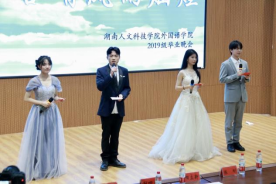 时光荏苒,岁月如歌,又是一年毕业季。为欢送2023届毕业生奔赴前程,追逐梦想,留下美好回忆,5月29日晚,外国语学院“跃入人海,各有风雨灿烂”2023届毕业生晚会于匠成楼报告厅隆重举行。出席本次晚会的有校友办主任刘莉、学工处处长陈刚、学工处副处长谢四元、曹宇,以及外国语学院院长胡瑾、党总支书记阳立新、副院长卿逸豪、党总支副书记罗嗣安、学院办公室老师、2019级班主任老师及全体毕业生。