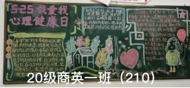 2021年5月23日晚,外国语学院在播馨楼举办大学生心理健康日黑板报评比,20级各班参赛。