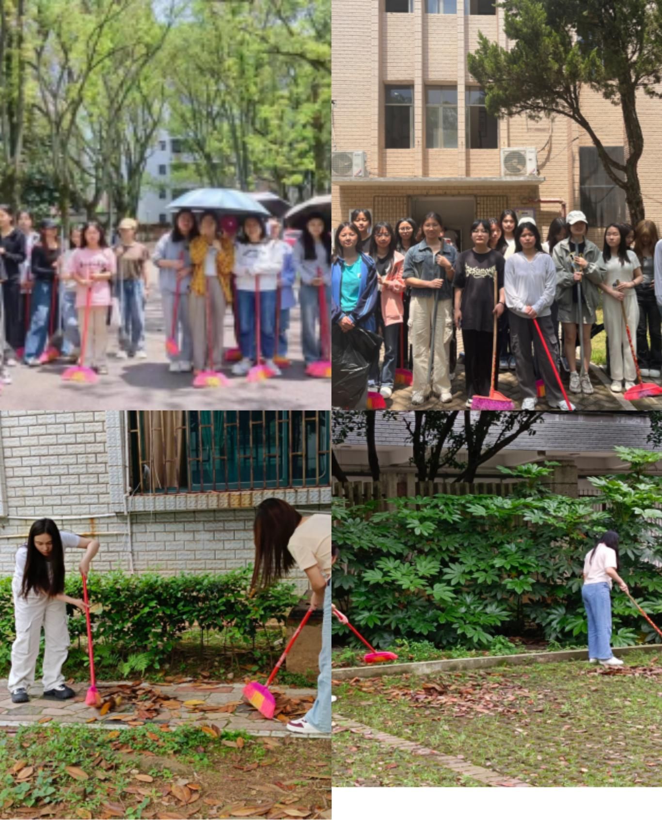 今天的太阳格外的灿烂,同学们迎着这灿烂的阳光,开始了清扫落叶的行动。同学们有的带好手套拔杂草,有的拿着扫把清扫区域带的落叶垃圾,有的拿着扫把夹子把区域带的个个死角清扫干净。随着大家的努力劳动,区域带的环境变得焕然如新。地面干净的如同一块块奖章,闪烁着劳动的光芒。