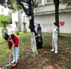 雨水纷纷落下,润湿了花田的泥土,而我们的守望花田劳育活动从未停止。2022年5月10日,外国语学院组织21级全体学生于播馨楼、明德楼、百全楼附近的绿化带区域开展了守望花田劳育实践活动。