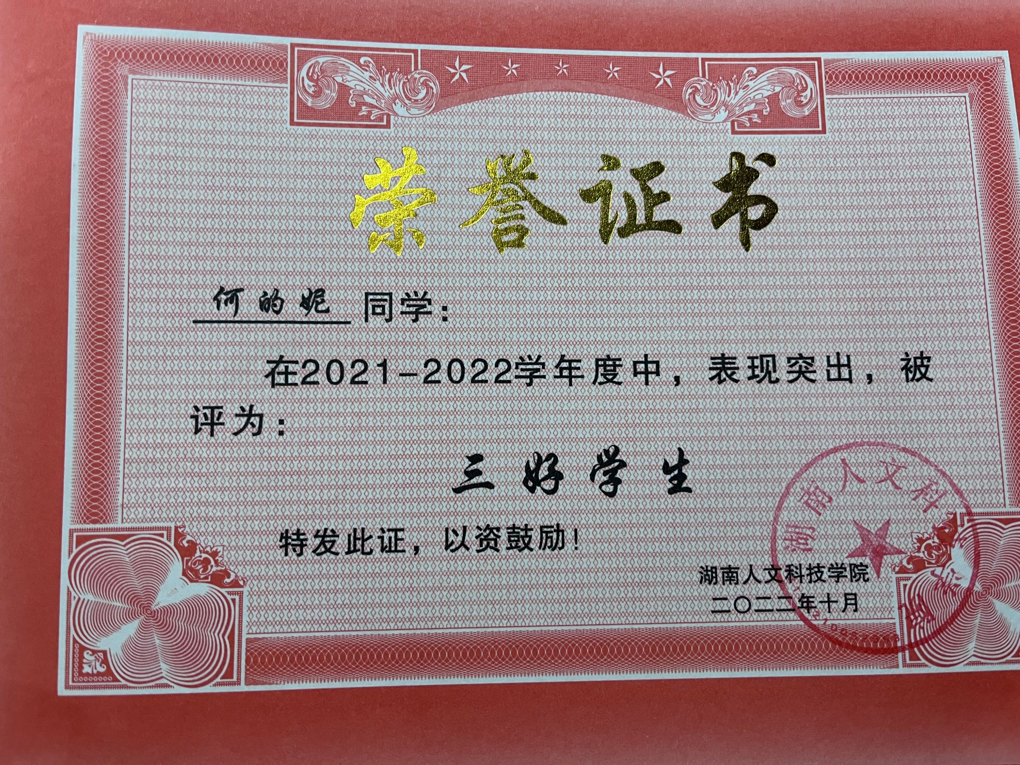 2022年获三好学生