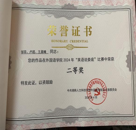 2022年,校跨文化能力大赛作品《电商下的中国奇迹》获三等奖