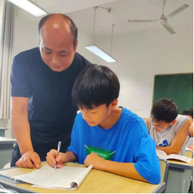 (龙老师和武老师为学生们辅导作业)