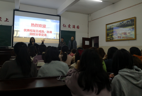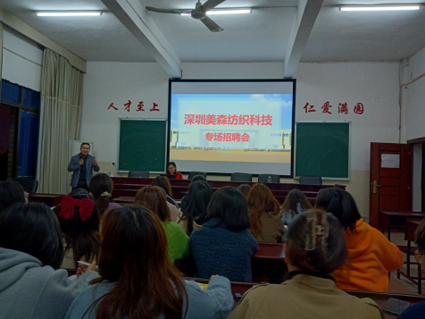 首先,深圳美森纺织品科技公司总经理王成浩、昂立百思图教育总经理孙涛2位优秀校友分别向学弟学妹们分享了自己的创业经历。随后,各家企业通过播放宣传片、PPT展示、面对面交流等方式向同学们介绍了企业文化、经营理念、发展前景、应聘条件、薪酬待遇及岗位需求等具体情况,并针对同学们提出的疑惑一一作了解答。会后,对有意向的学生进行了现场面试。