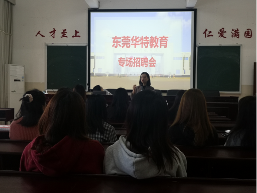4月20日上午,东莞华特教育集团在我院播馨楼406举办了专场招聘会,我院30余名毕业生参加了此次宣讲会。