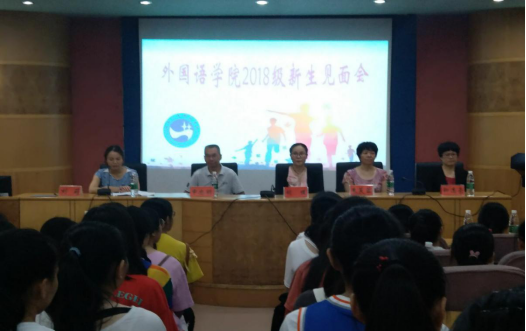 党总支书记申忠明首先致辞。向新同学表示热烈的祝贺与欢迎。并从办学历史、专业口径、教师水平、院系文化、校友知名度5个方面对我院情况进行介绍。还向新生提出3个要求:心系国家,务实笃行;有爱心、责任心;学会规划大学生活。随后,老生代表戴骊锦向新生传授了学习、生活以及工作上的经验,传递了外院学子奋发向上的精神。新生代表覃致远表达了对大学生活的憧憬与期望。最后,院长胡瑾详细地介绍了学院管理机构以及基本情况,并对全体新生寄予殷切的期望,希望新生尽快适应新的环境、勤奋创新、树立坚定理想信念。