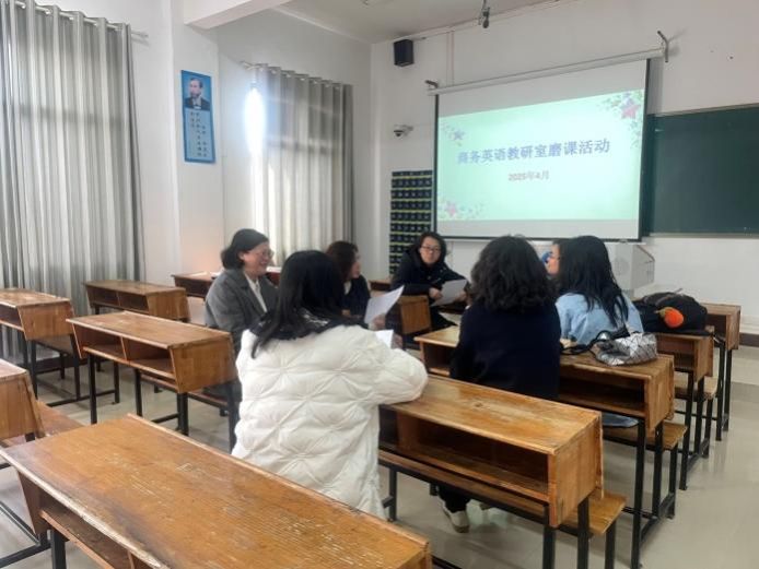 为深入贯彻落实本科教育教学诊断性审核评估整改要求,增强教师教学能力,4月1日下午2:30,外国语学院商务英语专业教研室在播馨楼207启动第二轮磨课活动。外国语学院院长张点、商务英语教研室全体教师齐聚一堂,开展磨课。本次活动以“说课+听课+评课" 形式推进,全体教师参与,旨在通过集体研讨优化教学设计,提升课堂教学质量。