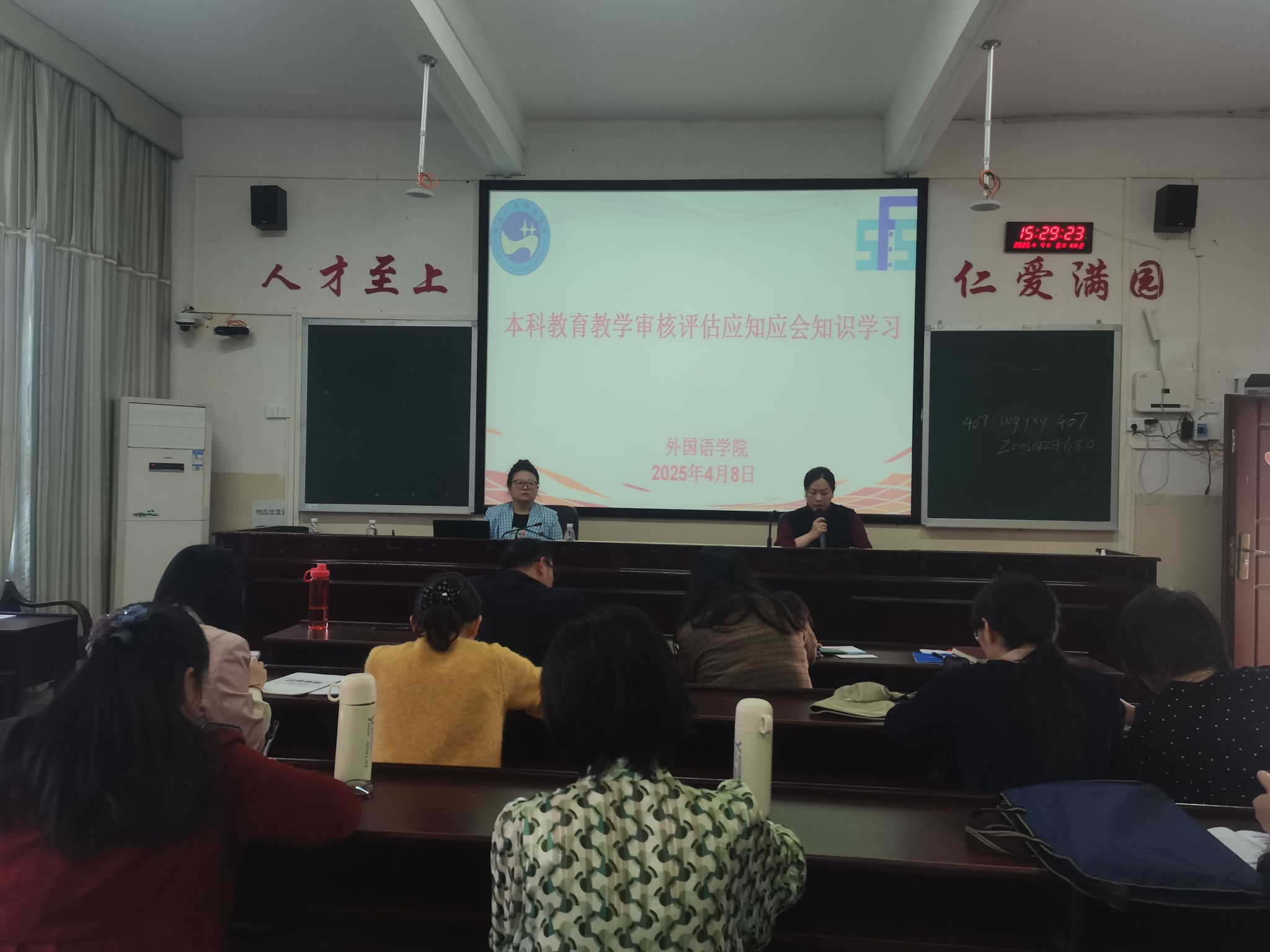 4月8日下午3点,外国语学院在播馨楼406召开本科教育教学审核评估应知应会知识学习会,全体教职工准时参会。