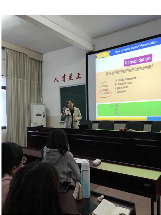 通过此次讲座,同学们在以后的教学中能够不断总结教学经验,解决词汇教学中存在的问题,尽快提高自身的专业素质,不断提高课堂教学效果!