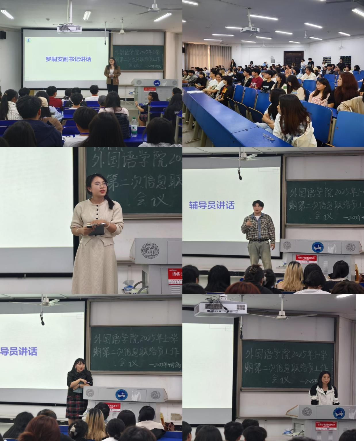 4月8日下午,外国语学院在致远楼220教室召开本科教育教学审核评估学生应知应会培训会暨心理信息联络员工作会议。外国语学院党总支副书记罗嗣安、全体辅导员、各班级班长、学习委员及寝室长参加会议。
