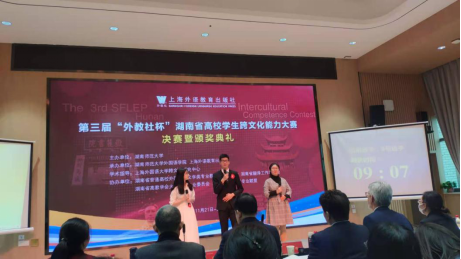 开放的中国,需要越来越多具有国际视野的跨文化人才。第三届“外教社杯“湖南省高校学生跨文化能力大赛本着"以赛促学、以赛促教"的精神,为高校师生搭建了一个展示跨文化能力风采、交流跨文化教学经验的平台,为讲好中国故事、传播中国声音,向世界展示真实、立体、全面的中国提供了良机。