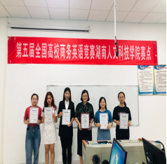 2021年5月23日外国语学院组织了第五届全国高校商务英语竞赛初赛,选拔了商务英语专业2018、2019级陈巧丽、宋婷玉、邓昌美、许俊、周魏、黄利宇、韦雨婷7名选手参加决赛。在2021年5月30日的第五届全国高校商务英语决赛中,外国语学院王春晖老师指导的商务英语专业2019级陈巧丽和2018级邓昌美同学荣获二等奖,商务英语专业2018级周魏、韦雨婷、宋婷玉同学荣获三等奖,王春晖老师荣获优秀指导老师奖。