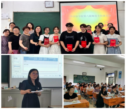 2022年6月7日下午,外国语学院在播馨楼303教室举办了师范生教学技能竞赛。参赛选手为英语专业2019级和2020级各班推荐选手,比赛内容分为三项:教学设计、课件制作和片段教学,选手们的教案设计规范,体现了良好的课程教学理念;PPT简洁大方,逻辑清晰;片段教学呈现较为扎实的专业基础、教学基本技能和课堂教学能力。通过激烈的角逐,杨凯威、谢静同学荣获一等奖,梁弘权、张尚阳、唐雅婷同学荣获二等奖,宋晴、邓荣华、李雨甜、董志远、张娜同学荣获三等奖。赛后,胡瑾院长对选手们的表现进行了点评和指导,对参赛选手的教学基本技能、教案设计、教学手段运用给予了高度肯定,也指出了课教学设计和片段教学中存在的问题,要求同学们在今后的学习中加强练习,不断打磨,提升教学能力。