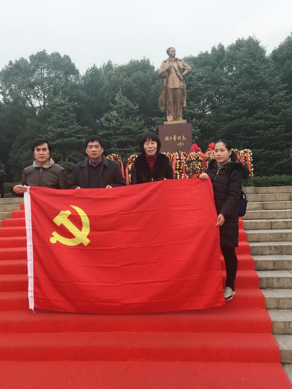 在刘少奇同志铜像前合影